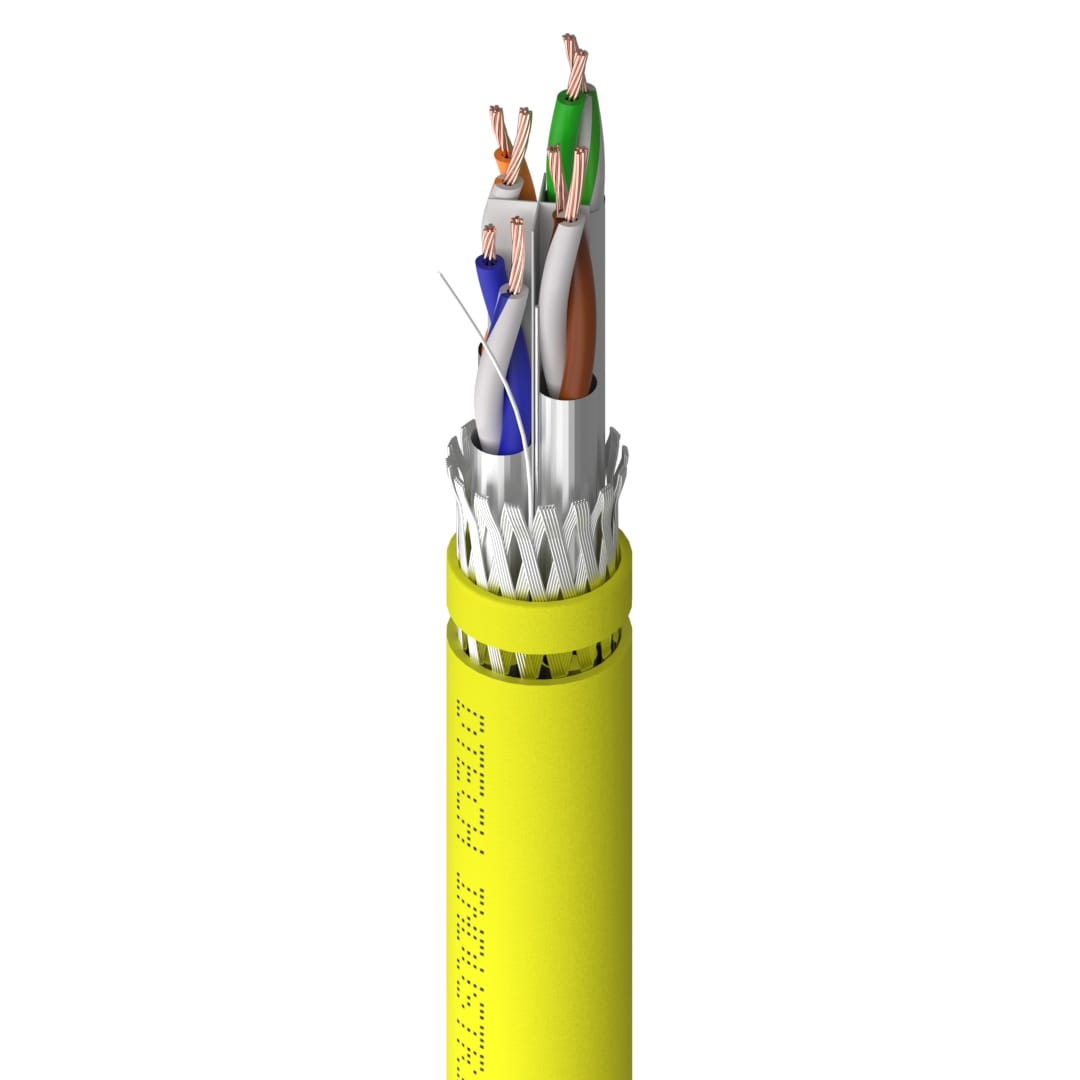 • S/FTP construction combines an overall braided screen with individually aluminium foiled pairs for exceptional EMI protection in electrically noisy industrial environments.